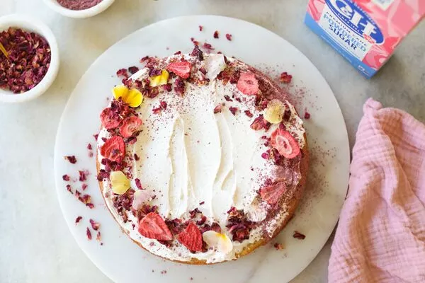 This cake starts with a light and fluffy cake base made with both C&H® Light Brown Sugar and Granulated Sugar Easy Baking Tub.