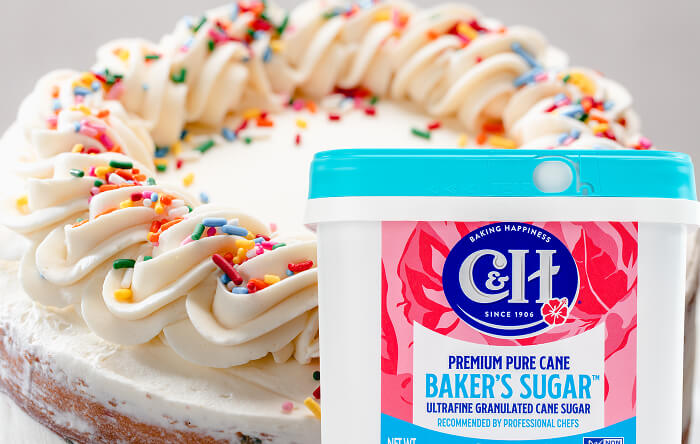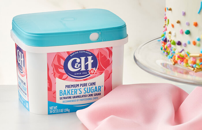 C&H® Baker's Sugar™ features ultrafine grain size, allowing it to dissolve and melt quickly and blend easily. For the first time ever, it is now available in the convenient and easy-to-use Easy Baking Tub.